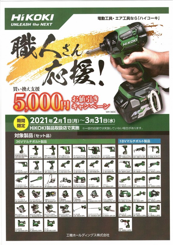 HIKOKI ハイコーキ 5,000円お値引きキャンペーン