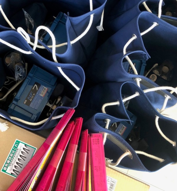 これからの建設現場を担っていくかもしれない可能性を秘めた、若き学生さん達にお届けする道具セット第一弾。応援してます。