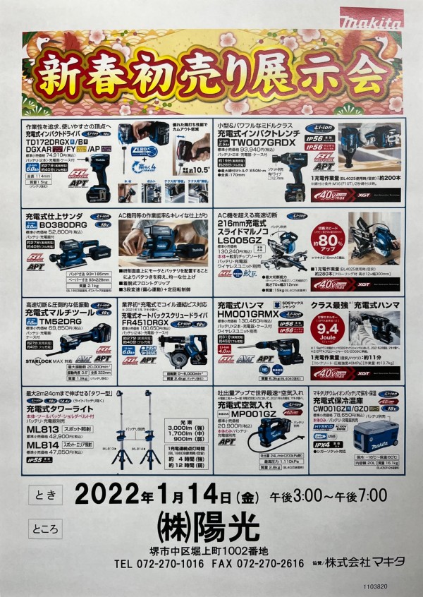 セール最終日1/14(金)の15〜19時はマキタ、マックスのメーカーさんによる初売り展示会開催します❗️