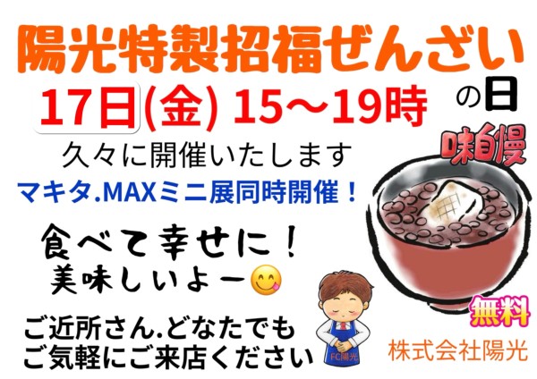 もちろん今年も陽光特製招福ぜんざい‼️で皆様のご来店心よりお待ちしております😄