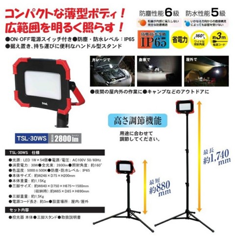 - trad TSL-30WS 三脚式LED薄型投光器30W