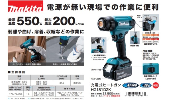 マキタのヒートガンに、18V充電式ヒートガンが新登場!