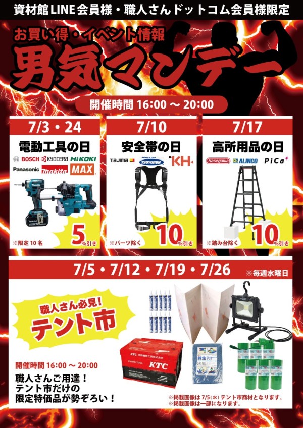 チラシ「超お買い得!イベント情報!!男気マンデー&テント市 開催します!」
