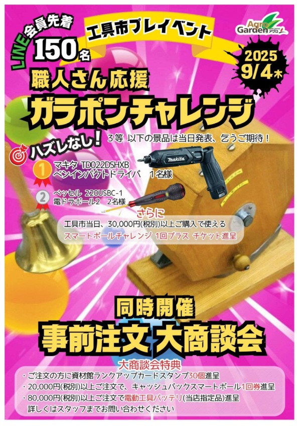 チラシ「恒例!工具市 プレイベント開催します!!!」