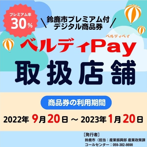 使ってお得!『鈴鹿市プレミアム付デジタル商品券ベルディPay』