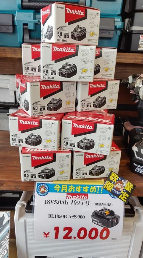 マキタ 18V5AHバッテリーをメーカー通常価格21,000円(税別)の所