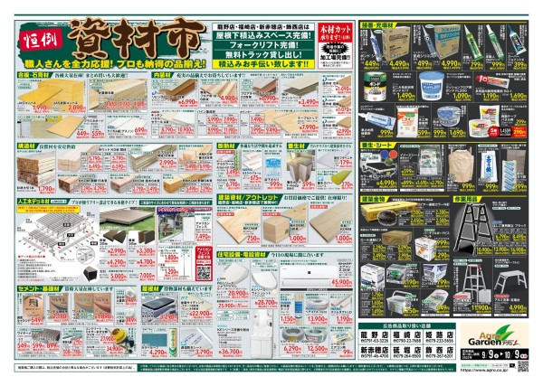 恒例の工具市 資材市セールのご案内です。