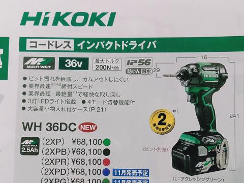 最大トルク200N・m HiKOKI36V WH36DC(アグレッシブグリーン)