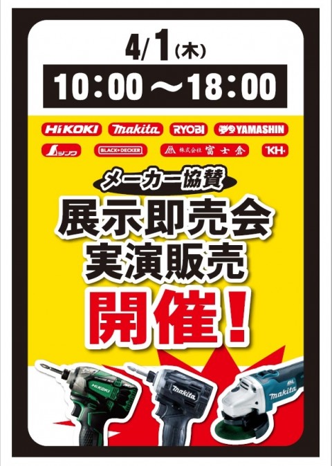 また当店では、展示即売会&実演販売を4月1日の10:00~18:00に開催致します。