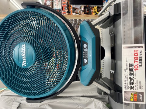 また、マキタ産業扇は新発売のCF301DZ店頭に展示しております。