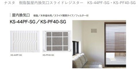 - ナスタ 樹脂製屋内換気口スライドレジスター KS-44PF-SG・KS-PF40-SG