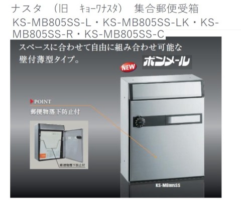 - ナスタ 集合郵便受箱 KS-MB805SS-L・KS-MB805SS-LK・ KS-MB805SS-R・KS-MB805SS-C