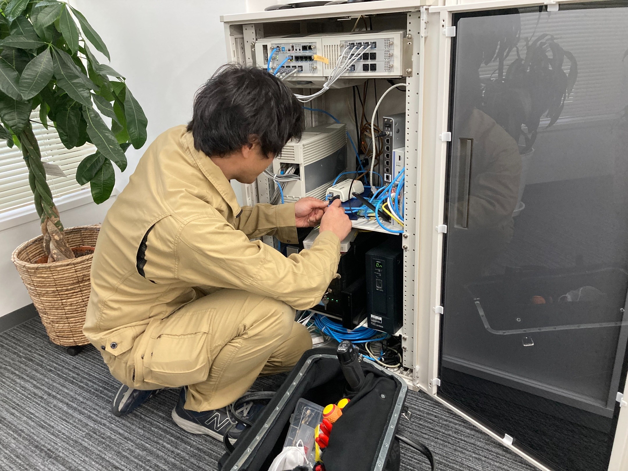 当社はオフィスに関する仕事を強みに、通信工事、電気工事、その他工事を行っており、どの部門でも強い技術スタッフが在籍しており、経験の無い方でも安心して学べる環境が出来ています。