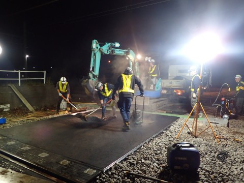 集合場所から現場車に乗り換えて現場に行き、養生や安全設備設置や区分けをします。